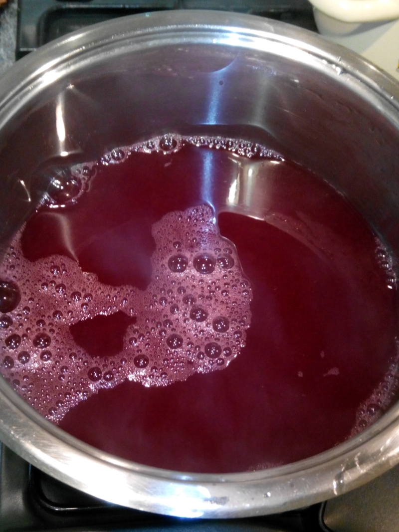 В 3-х литровой кастрюле кипятим воду, всыпаем в кипяток ягоды. Кипятим около 20-30 минут (пока ягоды не отдадут весь сок воде). Дальше откидываем вареные ягоды на друшлаг. Как ягоды стекут, фильтруем через 5 слоёв марли наш компот. Если хотите прозрачный как слеза напиток, фильтруем через ватку в воронке. Как только вы отфильтруете напиток, жидкости останется грамм 600-650. Вливаете этот оббьем опять в кастрюлю, и доводите до кипения. Как только жидкость закипит, засыпаете сахар и ванилин. Всё растворяете в кипятке и ждёте повторного закипания. После закипания, очень аккуратно вливаете 0.5л самогона (делайте не на газу, а в раковине, будут сильные брызги). Опять доводите до кипения (но не кипятить), и ставите кастрюлю, в таз с холодной водой. Как напиток охладится, его можно разлить по бутылкам, и подавать к столу. Выход ликёра 1 литр с хвостиком, крепостью 17-20%. Алкоголь в таком ликёре не ощущается как на вкус, так и на запах.